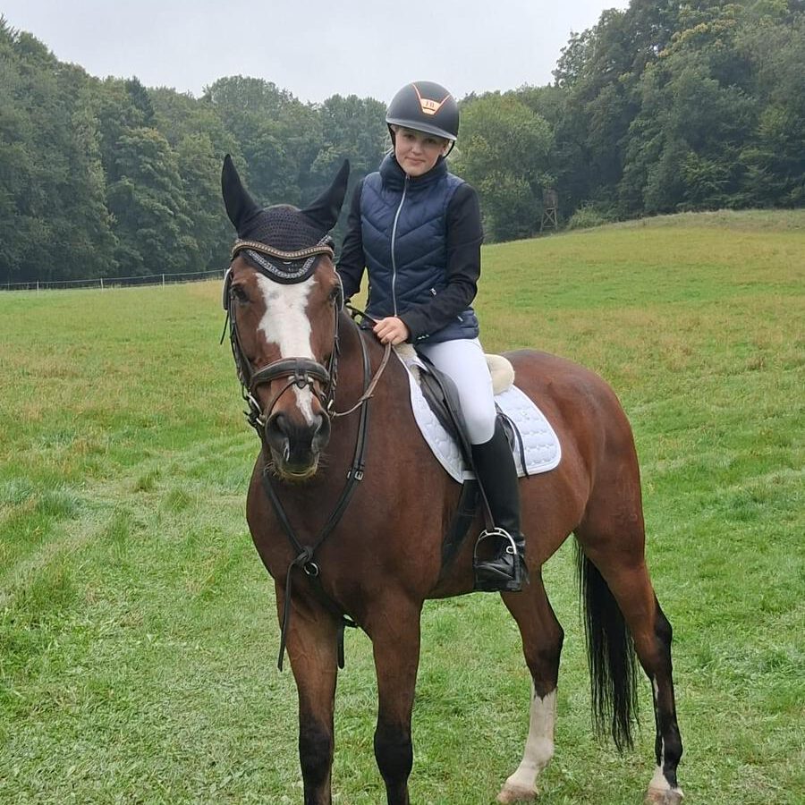 Annika macht bei uns seit 2025 ihre Ausbildung zur Pferdewirtin Haltung und Service. Dabei gibt sie auch Longenunterricht und unterstützt bei den Gruppenstunden.