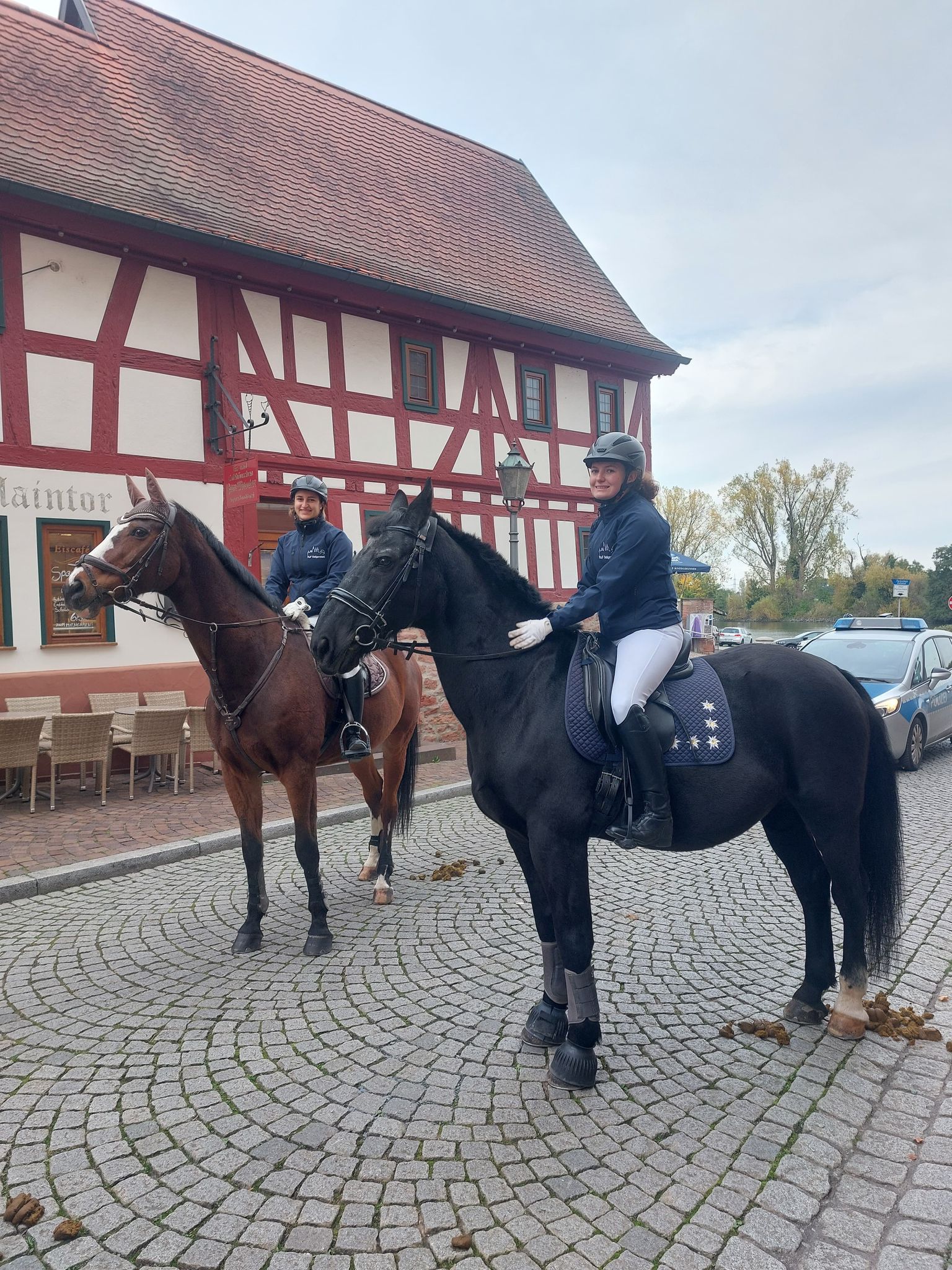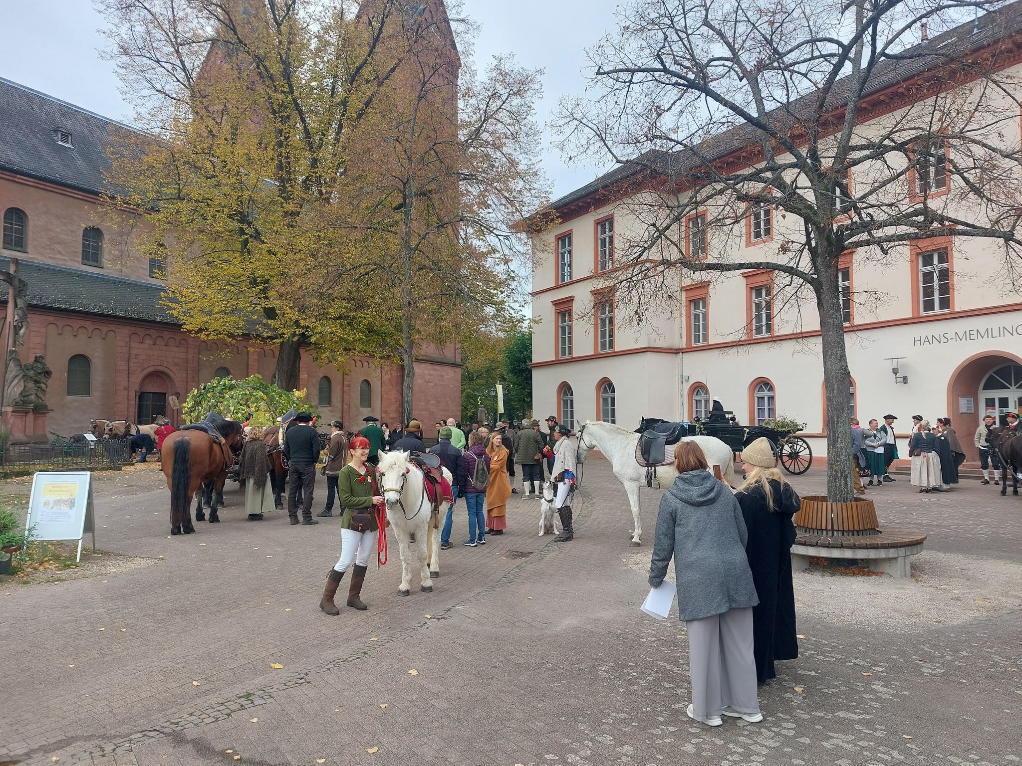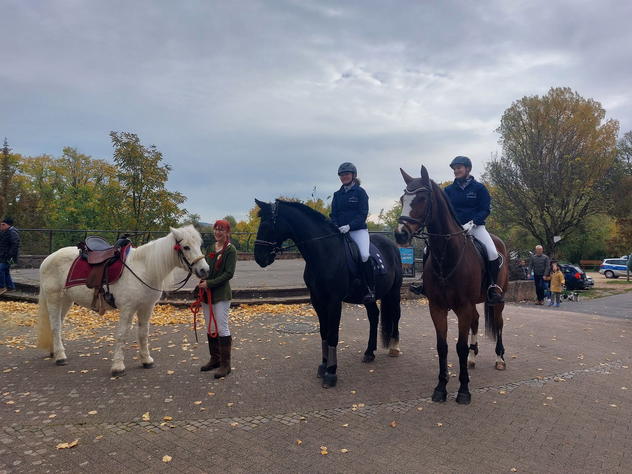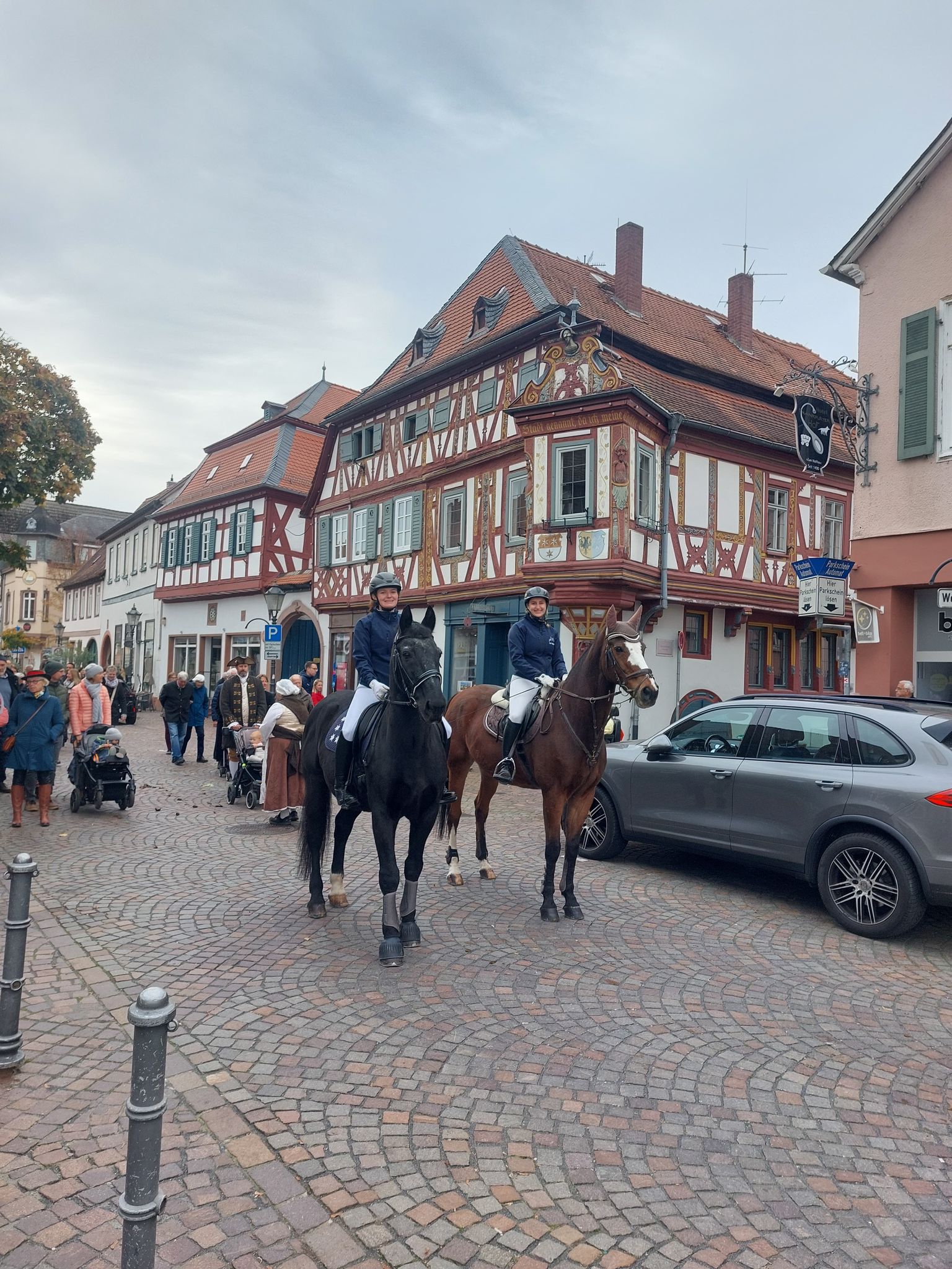 Unsere Vierbeiner haben sich vor Trommlern, Jagdhornbläsern, Kutschen und Zuschauern nicht aus der Ruhe bringen lassen. Wir waren mit den Pferden auf dem Marktplatz vor dem Rathaus, sind an der Feuerwehr vorbei und durch die schöne Altstadt gezogen. Ein kleiner aber für uns besondere Umzug, bei dem unsere Pferde die Straßen von Seligenstadt kennenlernen durften.